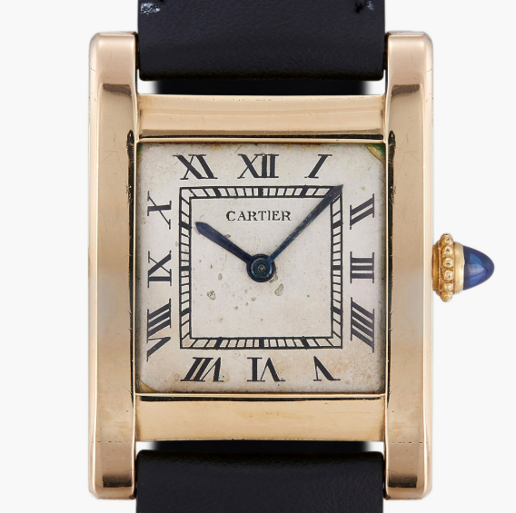 A Cartier Tank, another unusual shape from the brand, this one inspired by the tanks of World War I. Image courtesy of Sotheby’s.